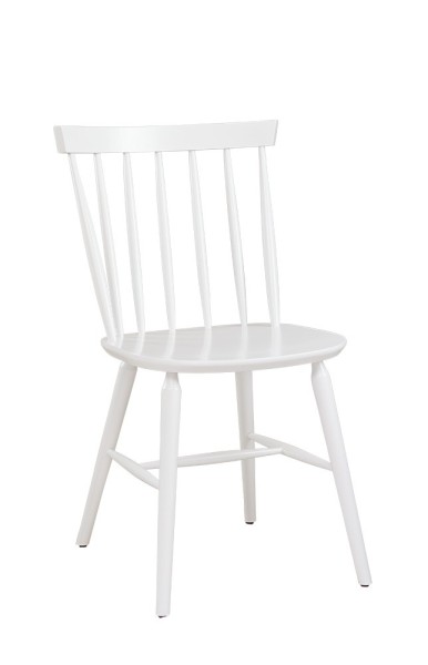 Der Stuhl ist in Weiß lackiert und passt somit zu vielen Einrichtungsstilen. Die Maße des Stuhls sind: 42 cm Breite, 84 cm Höhe, 49 cm Tiefe und die Sitzhöhe beträgt 44 cm.