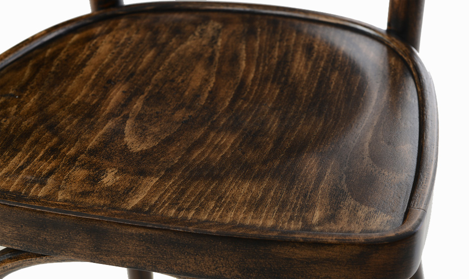 Das Gestell des Stuhls besteht aus robustem Buchenholz und ist in der warmen Holzfarbe American Walnut gehalten. Der Sitz des Stuhls ist ebenfalls aus Buchenholz gefertigt und bietet eine bequeme Sitzposition.