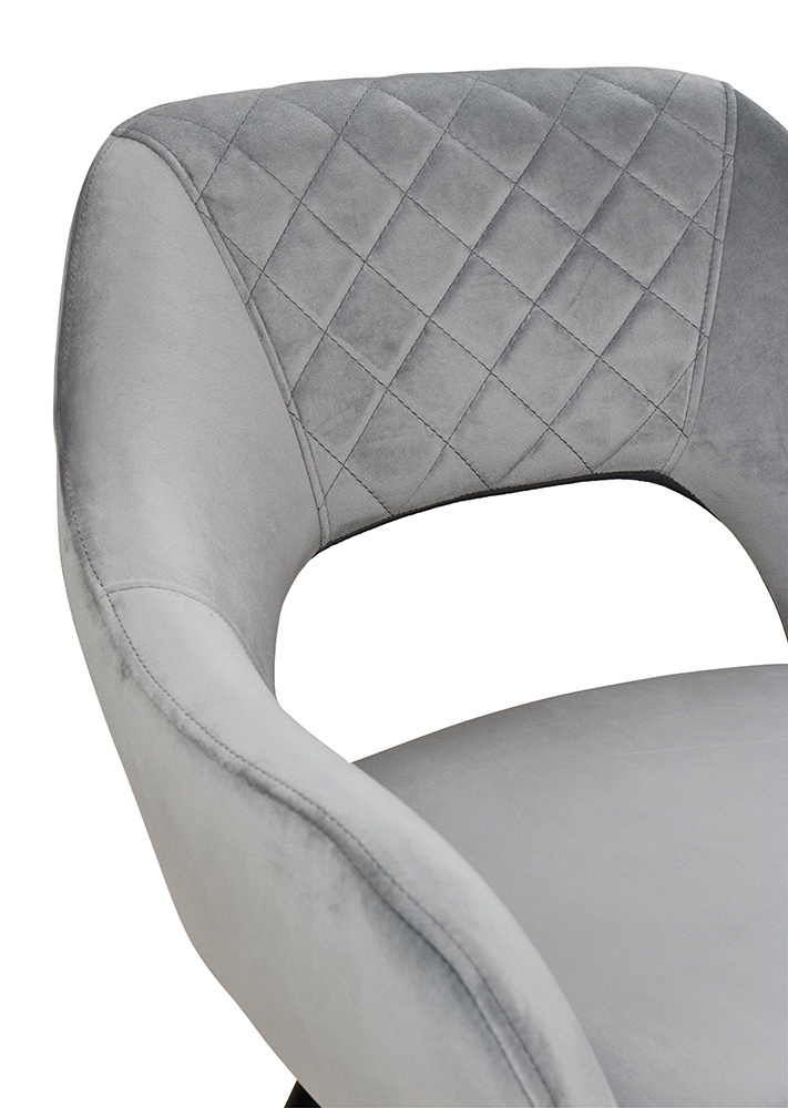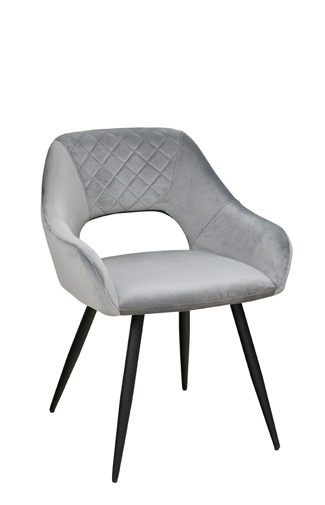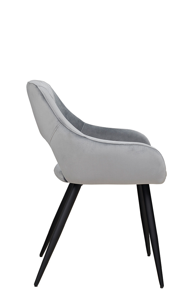 Der Stuhl ist in drei Farben erhältlich: Aqua und Grey sind mit samtigem Stoff bezogen, Ash hingegen mit Kunstleder. Mit einer Gesamtbreite von 60 cm, einer Gesamthöhe von 79 cm, einer Gesamttiefe von 59 cm und einer Sitzhöhe von 46 cm fügt sich der Stuhl perfekt in jeden Raum ein.