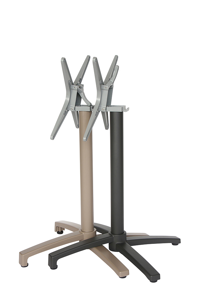 Das SPTG-274 Tischgestell in Taupe ist ein elegantes Aluminiumgestell mit praktischer Kippvorrichtung und herausnehmbarem Gewichtseinsatz für zusätzliche Stabilität.