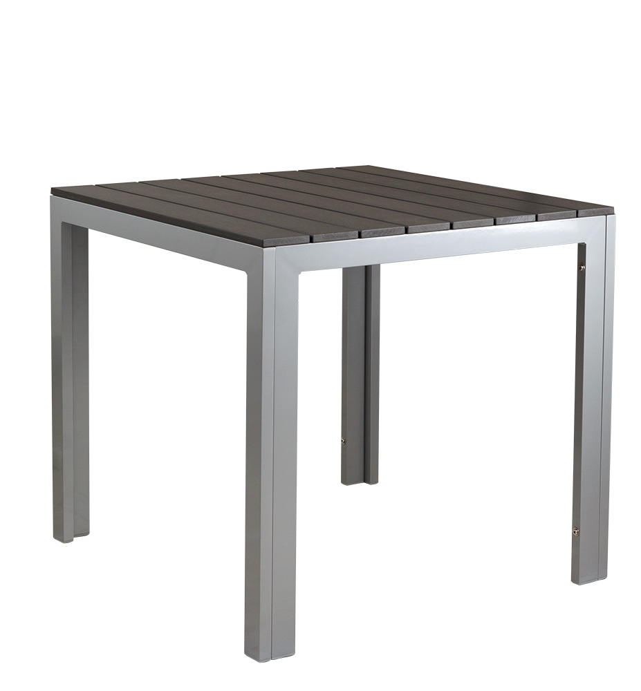 Die Tischplatte aus Polywood-Lattung ist nicht nur attraktiv, sondern auch UV-beständig, was sie zu einer langlebigen Option für den Außenbereich macht.
