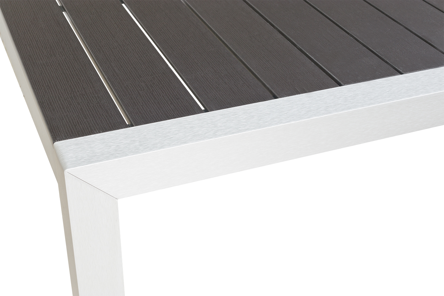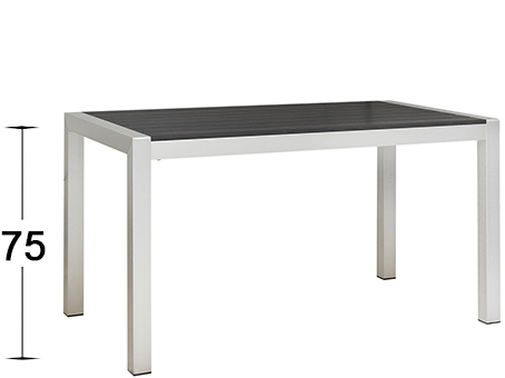 Das SPTG-299 Tischgestell in Grau mit Polywood-Lattung ist optimal für den Außenbereich geeignet und besteht aus rostfreiem Aluminium in ansprechender Edelstahloptik.